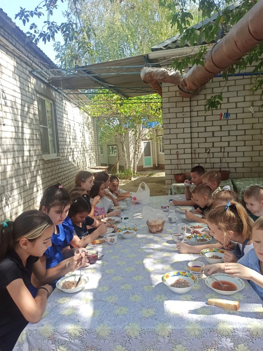 По окончании молебна на улице перед приходской трапезной была организована вкусная трапеза, которую совместно с поварами помогали приготовить мамы действующих и будущих воспитанников воскресной группы.