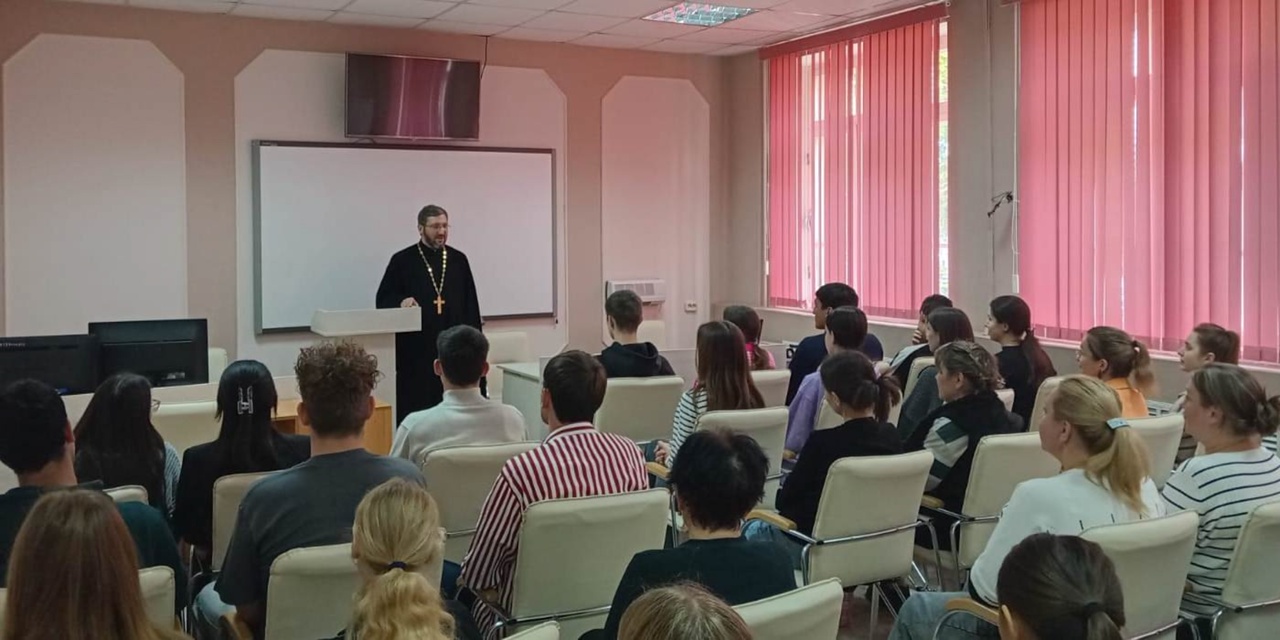 14 октября настоятель Ильинского храма г. Буденновска иерей Александр Тараскин встретился со студентами заочного и очного отделений филиала Ставропольского государственного педагогического института в г. Буденновске. Темой встречи стал отмечаемый в этот день праздник Покрова Пресвятой Богородицы. Священник рассказал студентам о установлении праздника на Руси, православных традициях, связанных с Покровом, и особенном почитании Пресвятой Богородицы русскими людьми. Учащиеся задали вопросы по теме праздника, а также о внешней и внутренней жизни Православной Церкви, на которые получили исчерпывающие ответы.