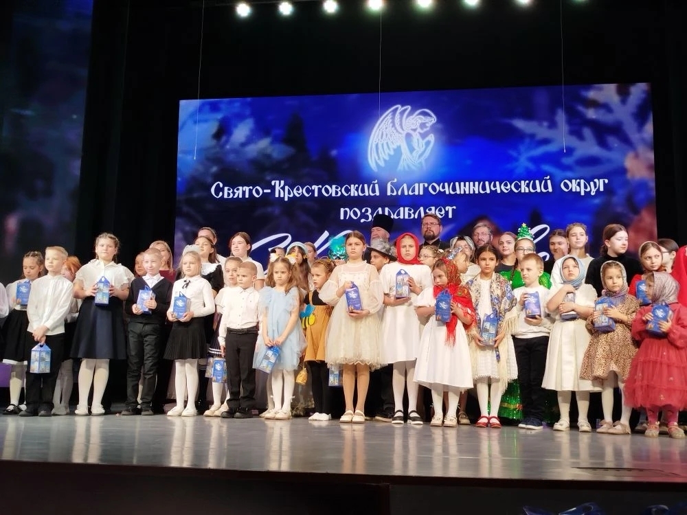 Поблагодарив всех участников детского концерта, благочинный округа вручил каждому сладкий подарок от епископа Николая. И все дети, находившиеся в зале, также получили подарки от владыки. Всего сладостями были одарены 300 детей.