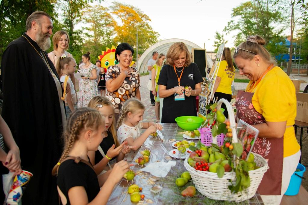 17 августа 2025 года в рамках сотрудничества с коллективом городского Дома культуры в парке имени Ю.А.Гагарина состоялась праздничная программа «Спас нам яблочки припас», в которой принял участие благочинный Свято-Крестовского округа митрофорный протоиерей Ириней Лукьянов. В своем обращении к участникам мероприятия священник рассказал о смысле праздника Преображения Господня, принял участие в детской интерактивной программе «Яблочные затеи» и посетил выставку-ярмарку декоративно-прикладного творчества. На аллее мастеров преподаватель Воскресной группы Казанского храма Зоя Онофрийчук провела мастер-класс для детей. В этой затее приняли участие более 40 детей, которые вместе с родителями с удовольствием изготавливали из различных материалов яблоки и дарили их всем желающим. Почти все дети на своих яблоках изображали крестики и, вручая их участникам мероприятия, поздравляли с праздником Преображения, являясь маленькими миссионерами.