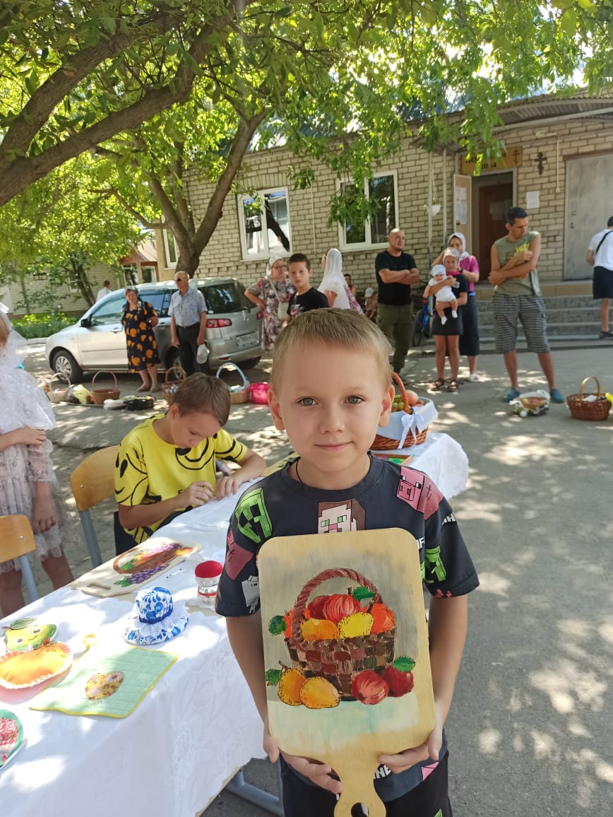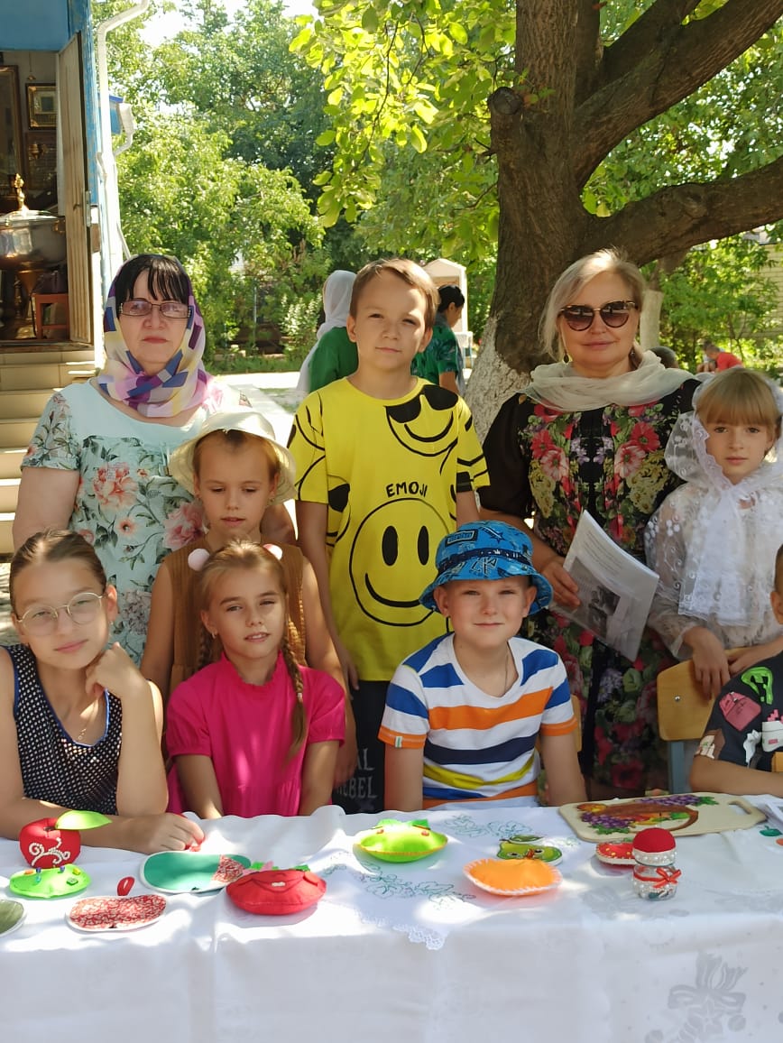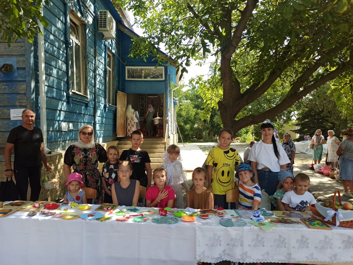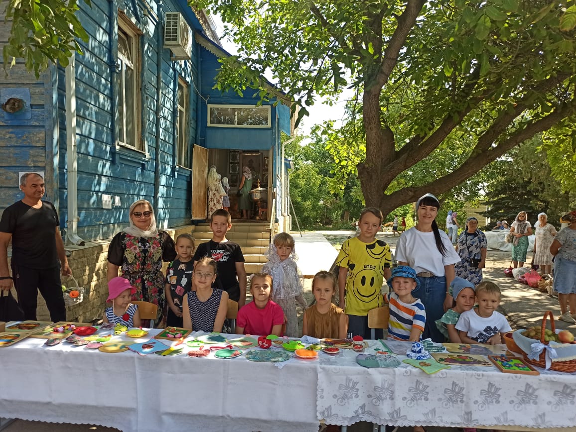 19 августа во дворе храма Казанской иконы Божией Матери г. Буденновска прошла благотворительная ярмарка, организованная преподавателем детской воскресной группы Зоей Онофрийчук. Прихожане храма, а также горожане, пришедшие освятить плоды, с интересом осматривали и приобретали поделки на тему праздника Преображения Господня, изготовленные детьми, учащимися при храме. Творить ребятам помогали их родители. Собранные денежные средства предполагается обратить на ремонт Казанского храма.