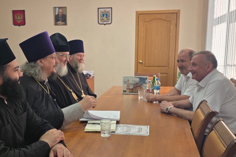 1 сентября в здании администрации Будённовского муниципального округа (БМР) состоялась рабочая встреча главы БМР Владимира Богданова с епископом Георгиевским и Прасковейским Николаем. Во встрече также приняли участие благочинный Свято-Крестовского округа протоиерей Ириней Лукьянов, руководитель епархиального строительного отдела иерей Александр Добренко и депутат Государственной Думы ФС РФ Елена Бондаренко.