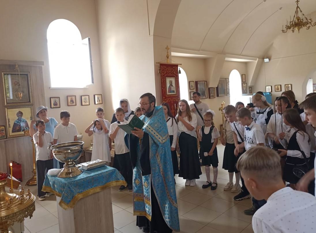 1 сентября, в День знаний, настоятель Ильинского храма г. Буденновска священник Александр Тараскин отслужил молебен и окропил святой водой учащихся 6 класса СОШ №4 г. Буденновска, которые вместе с классным руководителем пришли в храм получить благословение на учебу в новом учебном году. Священник поздравил детей и педагога с началом учебного процесса, пожелал терпения, здоровья и помощи Божией в трудах.