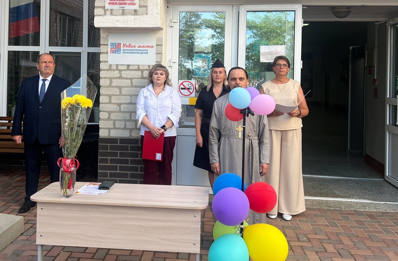 1 сентября, в День знаний, настоятель Ильинского храма г. Буденновска иерей Александр Тараскин посетил школьную линейку СОШ №1 г. Буденновска. Новый учебный год эта школа начала вместе с новым директором – Лабовской Викторией Александровной. Среди гостей мероприятия были гости из правительства Ставропольского края и администрации г. Буденновска. В своем слове отец Александр пожелал учителям, учащимся и новому директору школы успехов, здоровья и помощи Божией в учебном процессе.