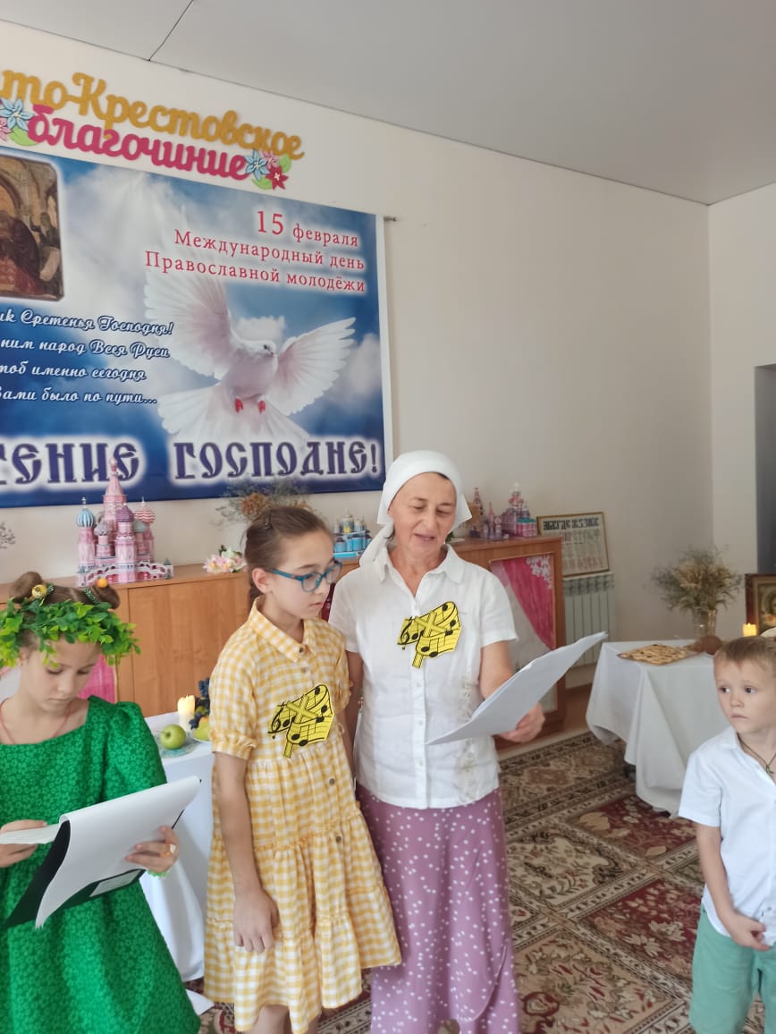 Также было отмечено, что Медовый Спас начинается после короткого поста, оканчивающегося двунадесятым праздником Успениея Пресвятой Богородицы. Пресвятой Деве была посвящена песнь «Дева Богородица», исполненная детьми под фортепиано.