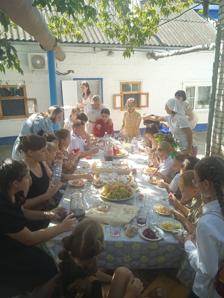 По доброй традиции в завершении праздника детей накормили вкусным обедом и ароматной яблочной выпечкой.
