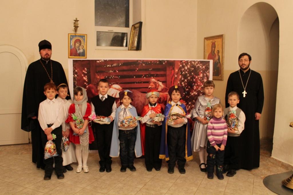 12 января учащиеся детской приходской воскресной школы при Казанском храме г.Буденновска выступили перед клиром и прихожанами с программой, посвященной Рождеству Христову. Дети пели, рассказывали стихи, разыграли сценку - рождественскую историю. По окончании выступления настоятель храма протоиерей Алексий Краевский вручил маленьким христославам рождественские подарки от администрации Буденновского муниципального района.